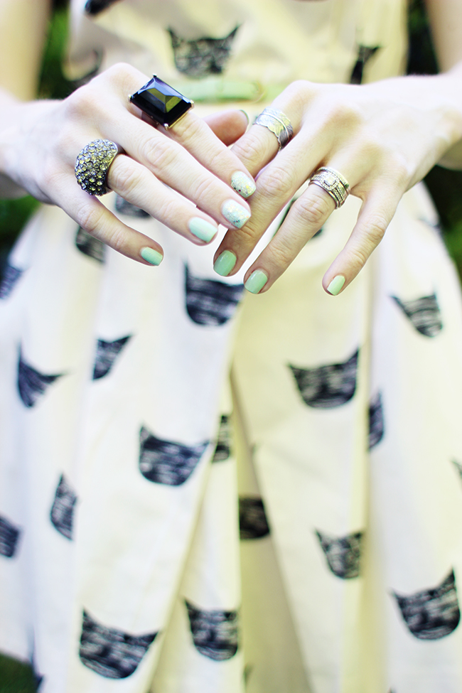 Wearing: 1// Feline Karma - Leah Goren 2// Mint Belt - Target 3// Black Knee Socks c/o Tabbisocks 4// Black Ring & Sparkle Ring - Forever21 5// Minted Nail Color - Revlon